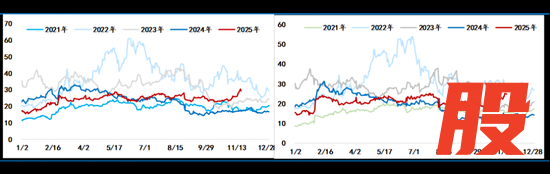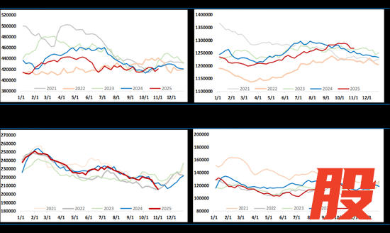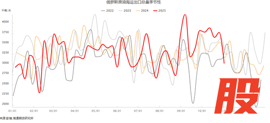虽然西方国家加大了对俄罗斯制裁力度,俄罗斯的海运原油最近二周时间出现了回落。但11月7日EIA在最新一期月报中维持全球石油库存将在2026年全年增加的判断,并认为这将在未来几个月对油价产生显著的下行压力。布伦特原油价格在2025年第四季度将降至平均每桶62美元,2026年则降至每桶52美元。